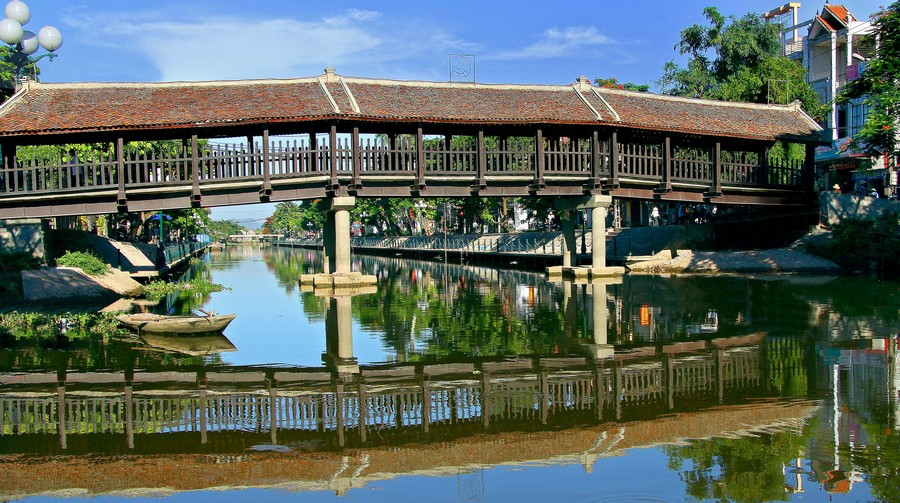 Là một công trình kiến trúc độc đáo và nổi tiếng tại huyện Kim Sơn, tỉnh Ninh Bình. Cầu được xây dựng với kiến trúc đặc biệt là các cột cầu và lan can được làm bằng ngói. Các cột cầu được xây dựng bằng các khối đá và được bọc bởi lớp ngói đỏ tươi. Các lan can cũng được làm bằng ngói với các họa tiết khác nhau tạo nên một kiến trúc độc đáo và đẹp mắt.